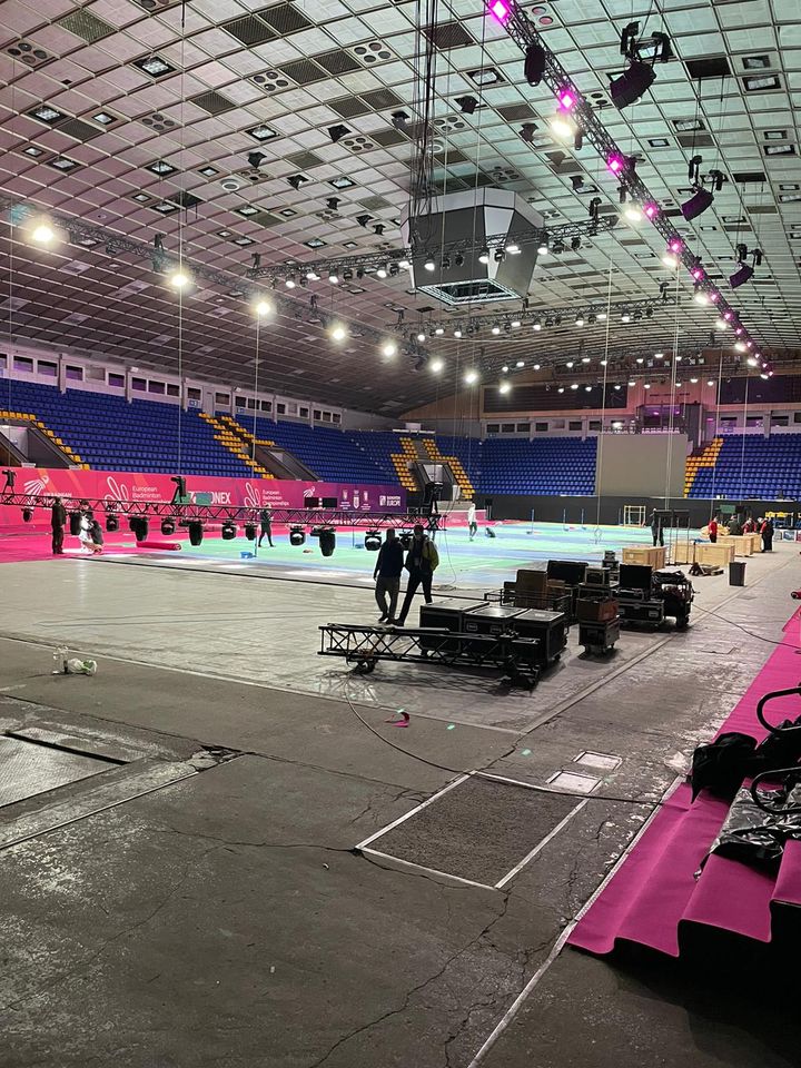 Takole je še pred nekaj dnevi izgledala notranjost dvorane Palace of Sports v Kijevu, kjer se danes pričenja že 28. evropsko prvenstvo v badmintonu. V Ukrajini bo nastopilo 232 tekmovalcev in tekmovalk s stare celine.