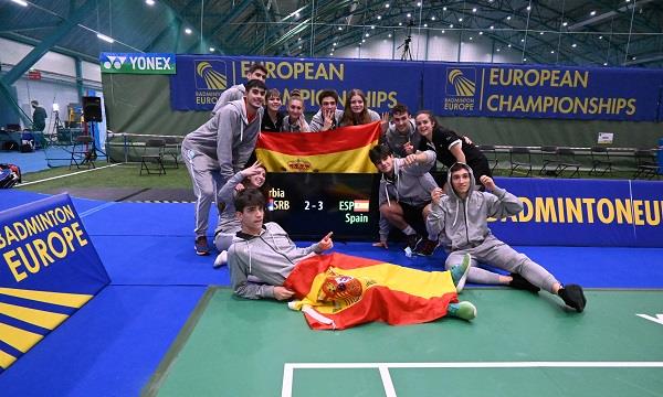 Na sliki: Španci presenetljivo ugnali Srbijo s 3:2… …Slovenije žal ne bo med četrtfinalisti ekipnega dela evropskega prvenstva, saj so včeraj aktualni prvaki Francozi zanesljivo slavili s 5:0. Odlično je nastopila med dekleti Anja Jordan, ki je v treh setih v 47-minutnem dvoboju s Floriane Nurit, naposled le klonila z izidom 21:19, 14:21 in 19:21.…
