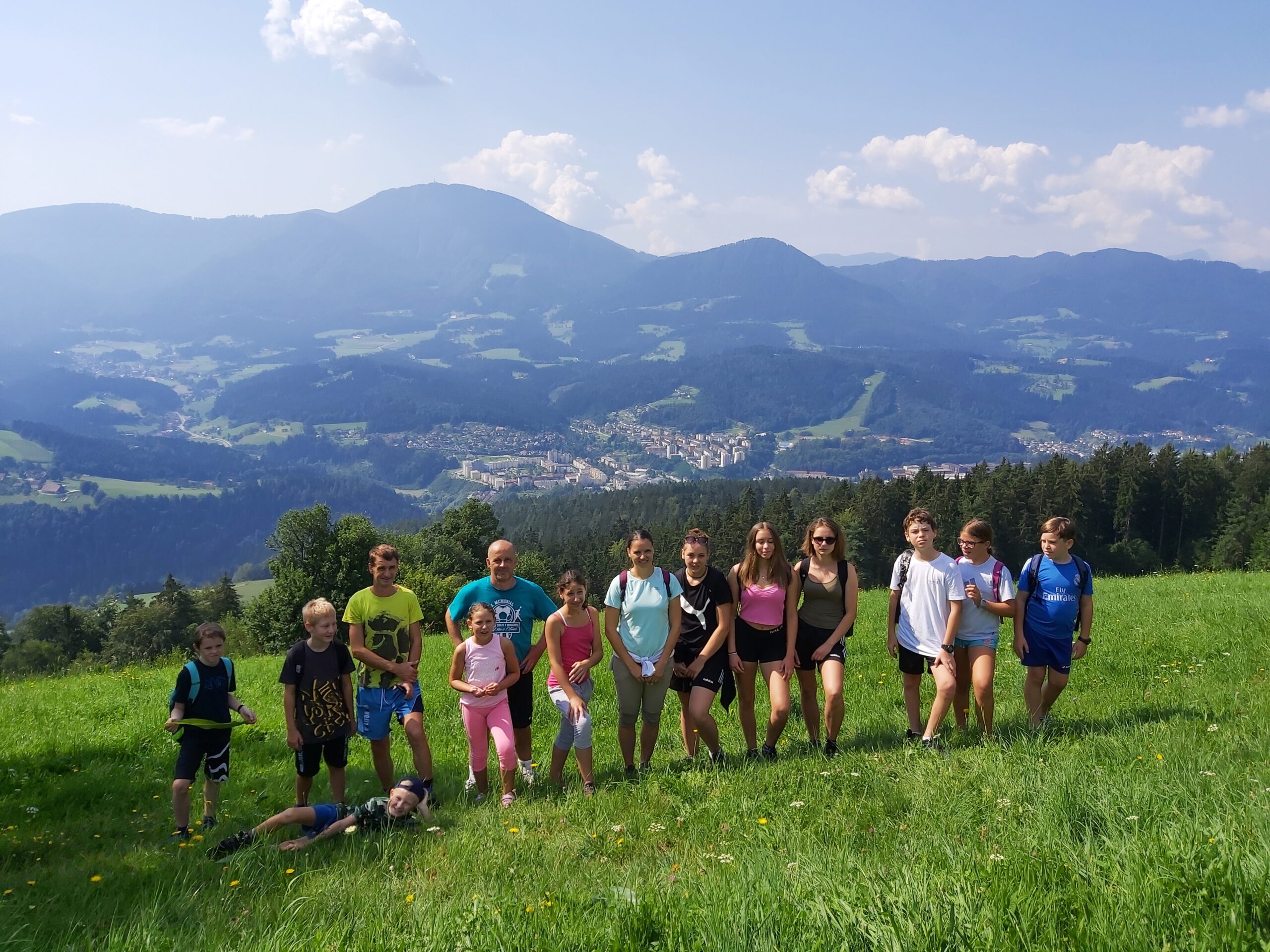 Danes zjutraj se je del udeležencev priprav povzpel na Šteharski vrh in nastala je tale prekrasna fotografija, v sončnem vremenu smo bili nagrajeni s lepim pogledom na mesto Ravne na Koroškem! Šteharski vrh je priljubljena izletniška točka številnim domačinom, tudi poimenovana kot Črneška gora, z vrhom na 1018 m nadmorske višine.